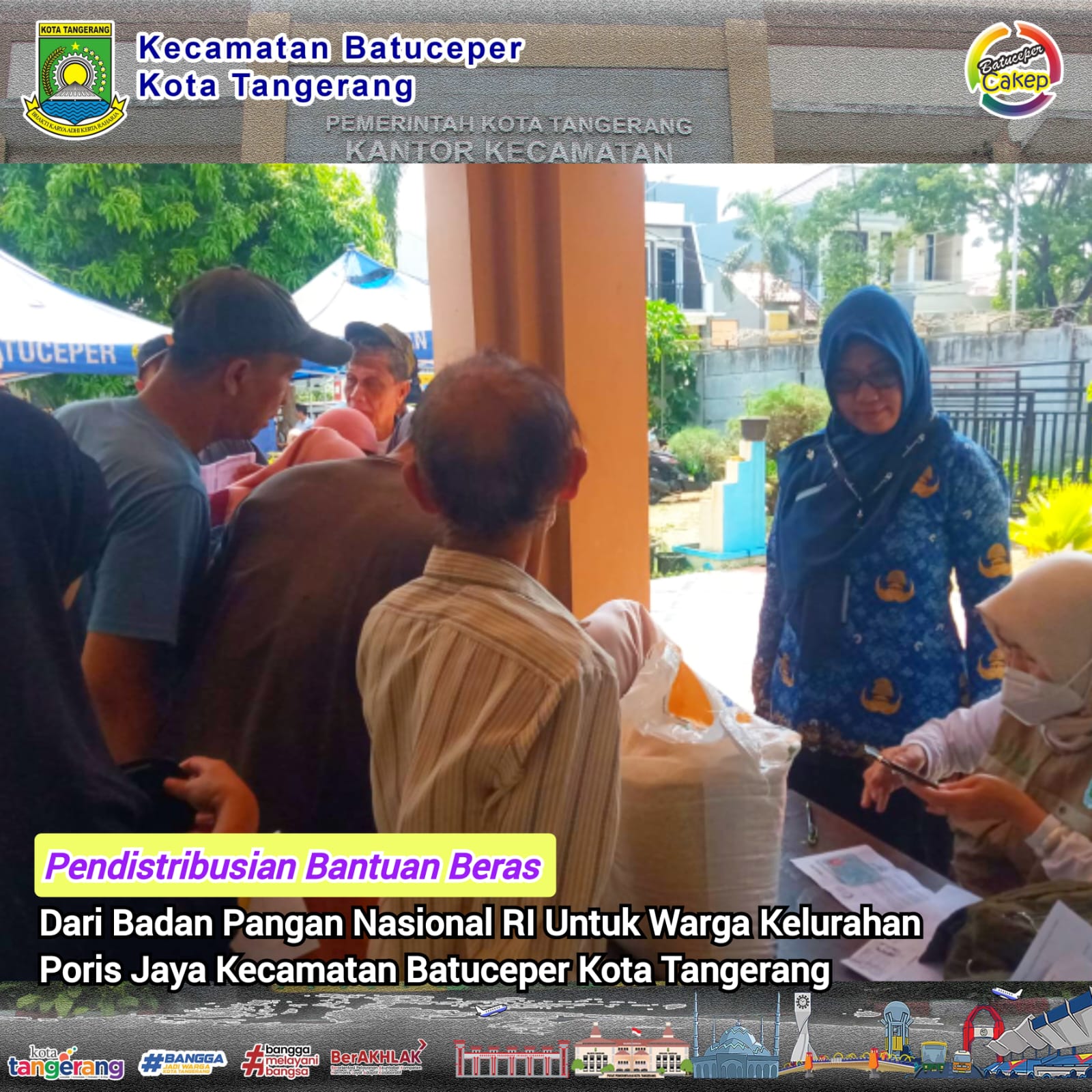27 Nov 2025 23:06 Pendistribuasian Bantuan Beras Dari Badan Pangan Nasional RI Untuk Warga Kelurahan Poris Jaya Kecamatan Batuceper Kota Tangerang Read More 12 Nov 2025 20:12 Kecamatan Batuceper Kota Tangerang | Informasi & Layanan Masyarakat Read More 16 Aug 2025 14:41 Kami menerapkan 9 nilai dasar antikorupsi sebagai landasan sikap dan tindakan Read More 01 Aug 2025 08:05 Layanan Pengaduan Aplikasi LAKSA Read More 15 Mar 2024 20:52 *Di Sela Safari Ramadan, Nurdin Bagikan Santunan ke 100 Anak Yatim* Read More 19 Dec 2023 14:15 Kegiatan Sero Survey Antibodi SARS-COVID-2 Berbasis Komunitas Yang Di Selenggarakan Oleh Kemenkes RI Di Upt. Puskesmas Batuceper Dengan Jumlah Peserta Yang Disurvey 17 Orang Dari Kelurahan Kebon Besar Kecamatan Batuceper Kota Tangerang Read More