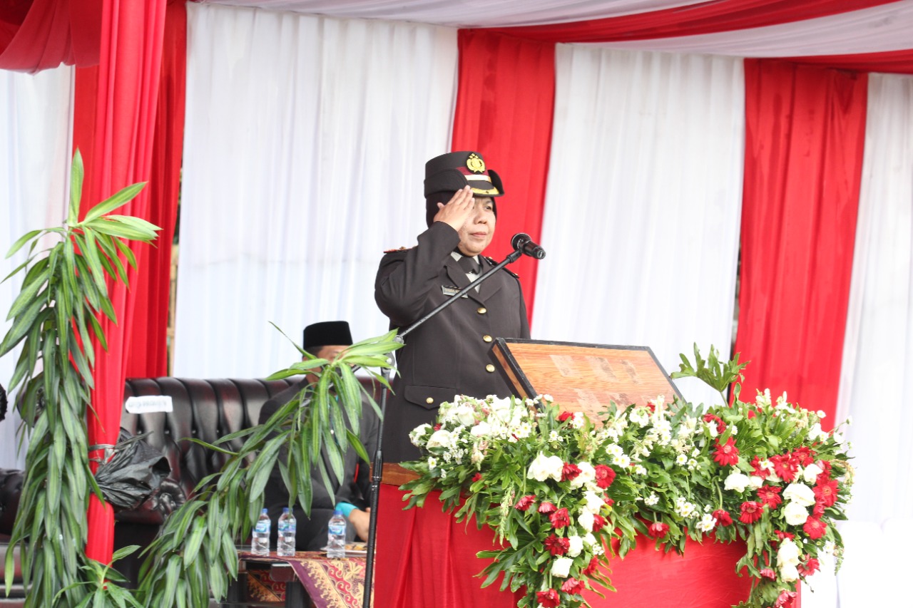 Kapolsek Batuceper Kompol. Susida Aswita Pimpin Upacara Penurunan Bendera Merah Putih Memperingati Dirgahayu Republik Indonesia Ke 77 Tahun 2022 Tingkat Kecamatan Batuceper Kota Tangerang Di Lapangan Sepak Bola Komplek Polri RT 06/03 Kelurahan Batuceper K